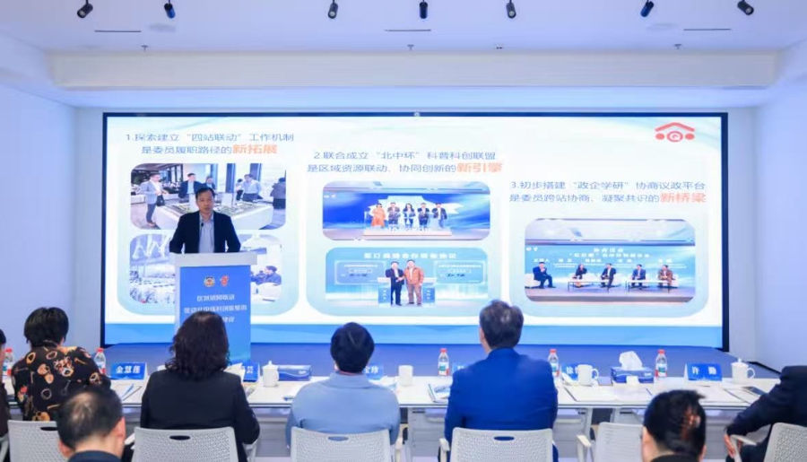 曲阳路街道党工委书记徐普宝在现场通报了“四站联动”一年来的实践成效。他说,作为首届“四站联动”活动的发起方之一,去年10月,曲阳与凉城、广中、江湾委员工作站一起举办了首次联组活动,共同开启北中环区域政协委员工作站联动履职的新篇章。一年来,聚焦北中环科创集聚带建设,探索建立了“问题共研、资源共用、成果共享”的履职机制,发动委员深入一线建言献策,形成了一批高质量建议和社情民意。“四站联合”还举办了“北中环科创沙龙”,推动政协委员、科研院所、科创企业与政府部门面对面交流,围绕创新引领、营商环境、新质生产力等议题深入协商,搭建了“政企学研”协商议政平台。街道建立并发布了首批科普科创资源库,推动成立了“北中环”科普科创联盟,建立了“资源联享、活动联办、科创联动”的长效机制。值得一提的是,在曲阳、凉城委员工作站的牵线搭桥下,上海材料研究所与上海天工开物公司现场签约,形成了示范性合作成果。在委员提案的推动下,广粤路345弄通道改造工程取得实质性进展。